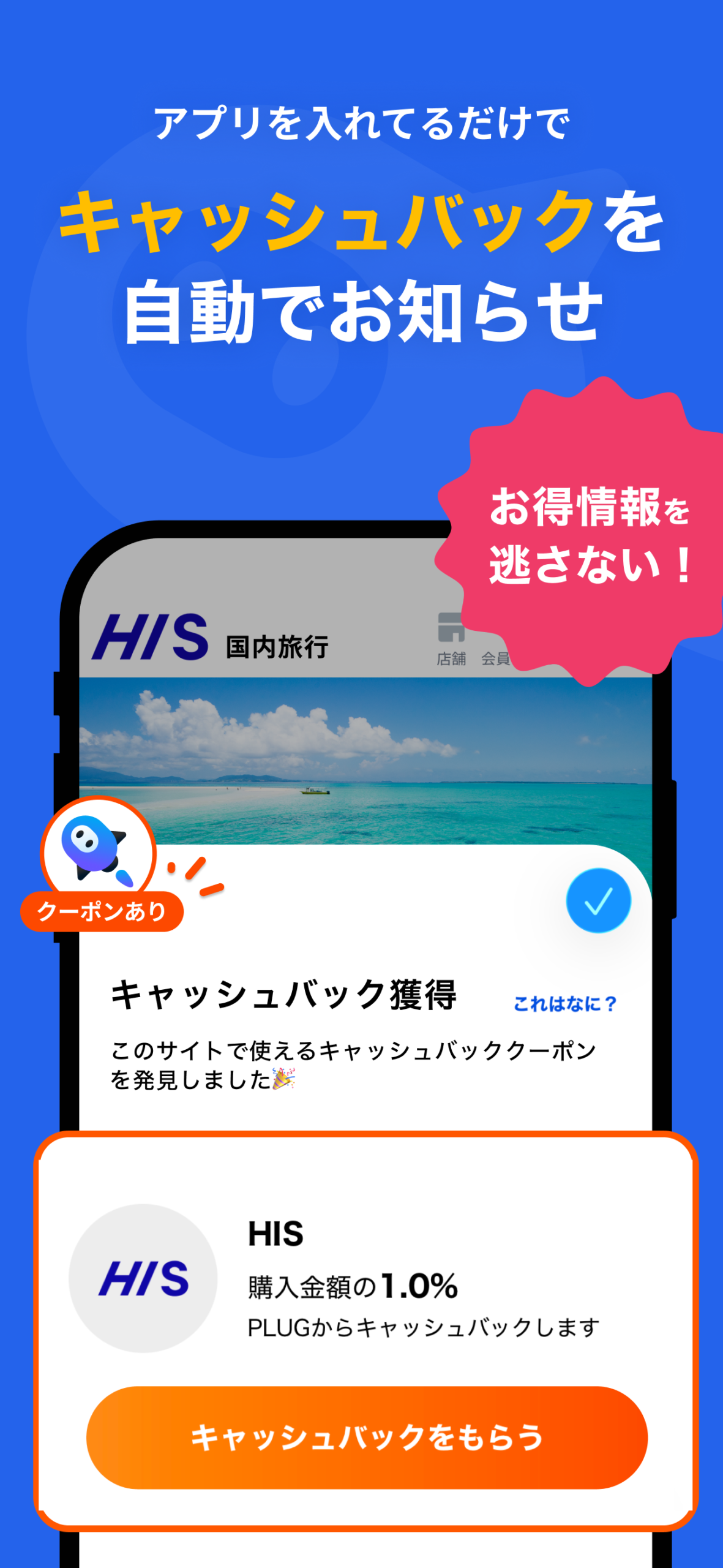 PLUGを「入れるだけ」で自動的にキャッシュバックを受けることができるよ!