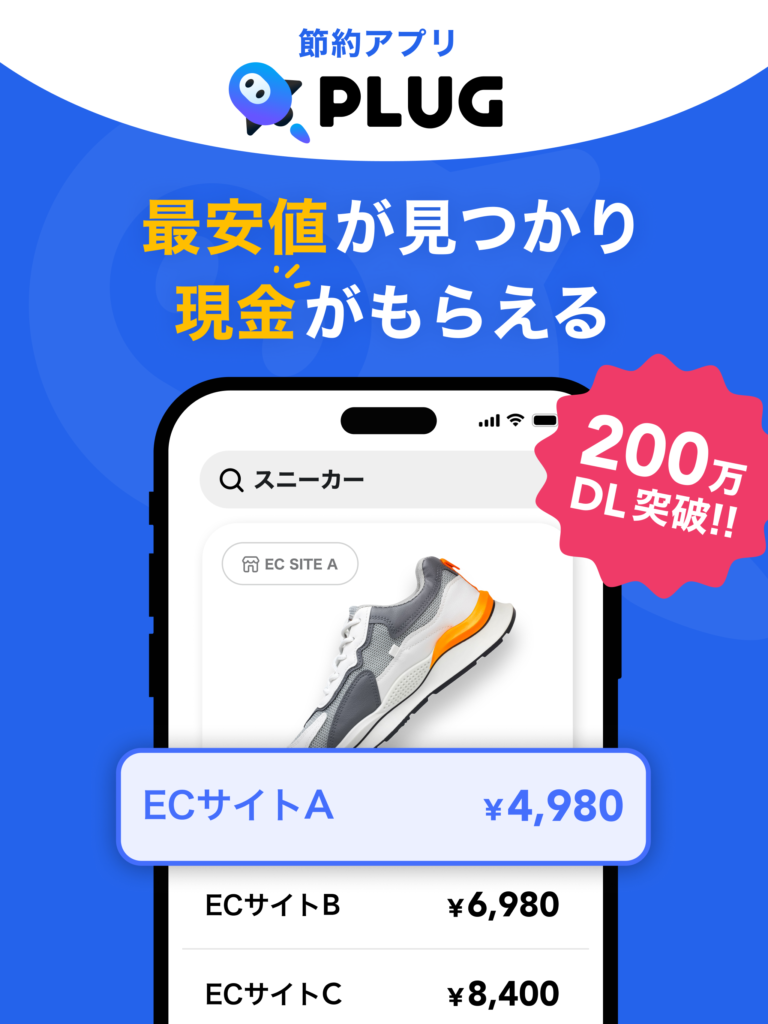 最安値検索&キャッシュバックアプリのPLUG。
